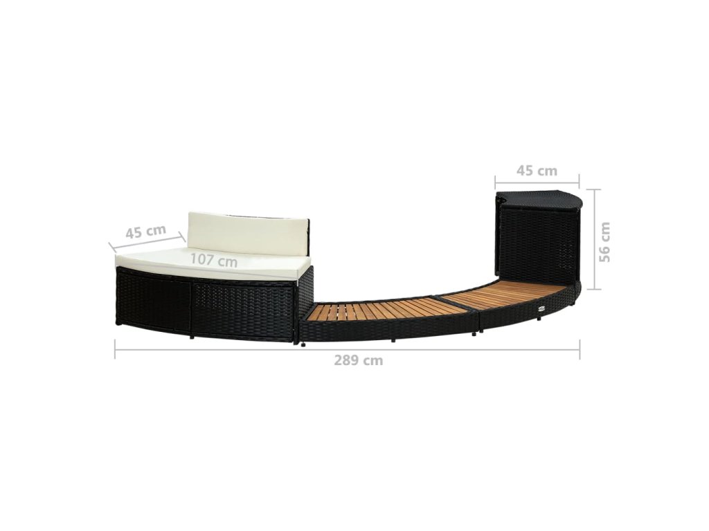 Vestavěný úložný prostor obruby umožňuje uspořádat všechny potřebné věci a mít je snadno po ruce. Robustní ocelový rám a akáciové dřevo s olejovou povrchovou úpravou, odolné proti povětrnostním vlivům, vydrží náročný provoz a jsou vysoce odolné. Součástí je malá pohovka s poduškou pro maximální pohodlí při relaxaci.