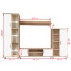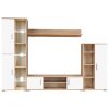 Obývací stěna skládající ze dvou bočních skříněk různých velikostí, TV stolku a nástěnné police poskytuje dostatek prostoru pro ukládání vašich multimediálních zařízení, DVD přehrávače, mediálních nosičů, knih a různých menších předmětů. Je také vhodná pro vystavení dekorativních předmětů, fotorámečků nebo květin. Součástí levé boční vitríny jsou tři skleněné police s energeticky úsporným bílým LED osvětlením, které vytváří příjemnou atmosféru.