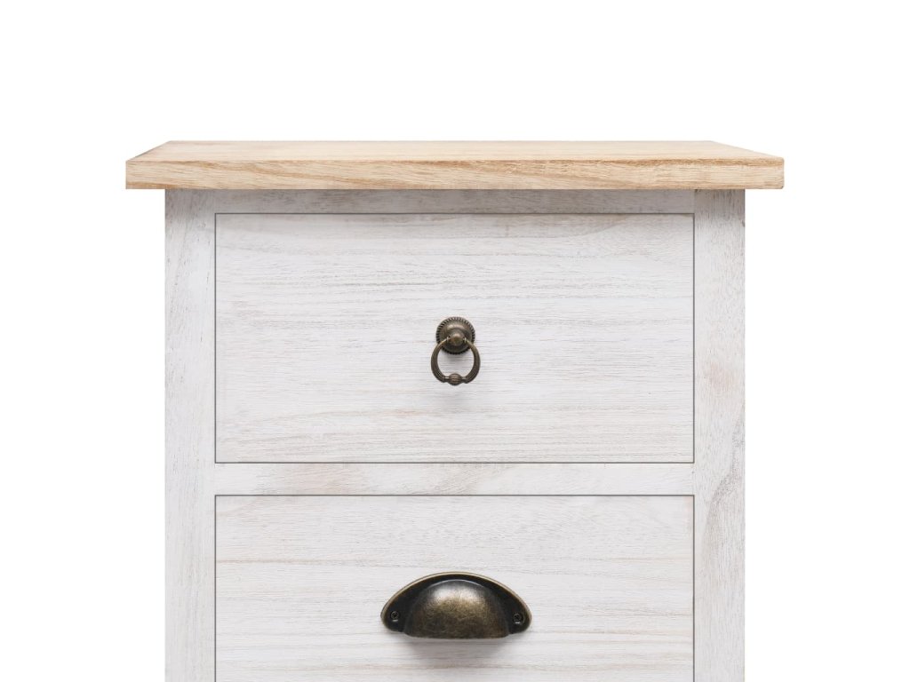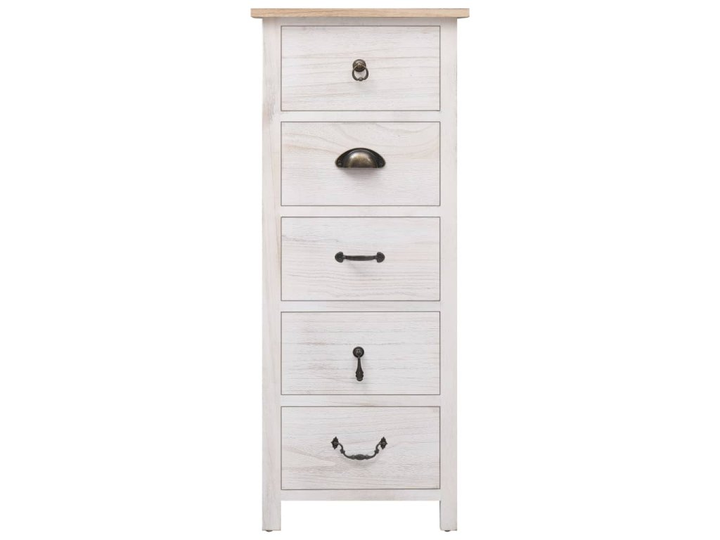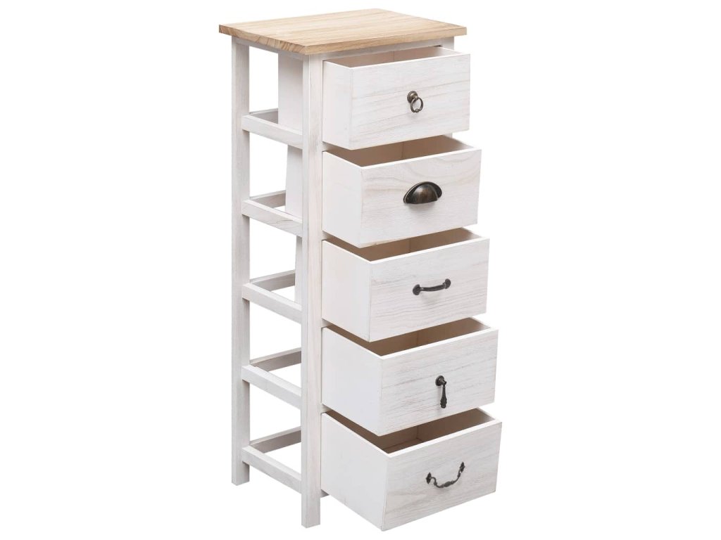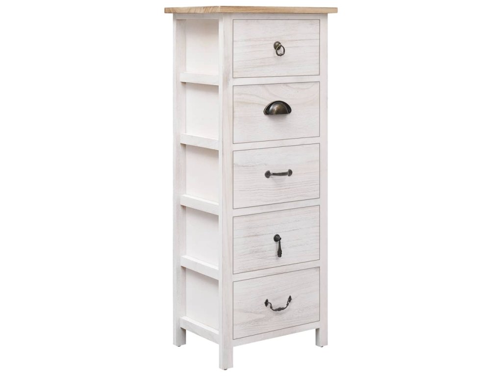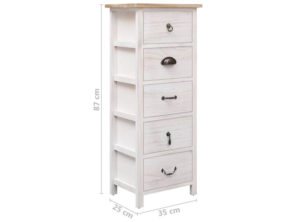 Tato skříňka se zásuvkami je vyrobená ze dřeva pavlovnie a je mimořádně odolná a robustní. Příborník nabízí velký úložný prostor s 5 zásuvkami. Robustní horní deska je ideální pro vystavení dekorativních předmětů, fotorámečků nebo pokojových rostlin. Snadno se čistí vlhkým hadříkem. Odkládací skříňka se snadno sestavuje.