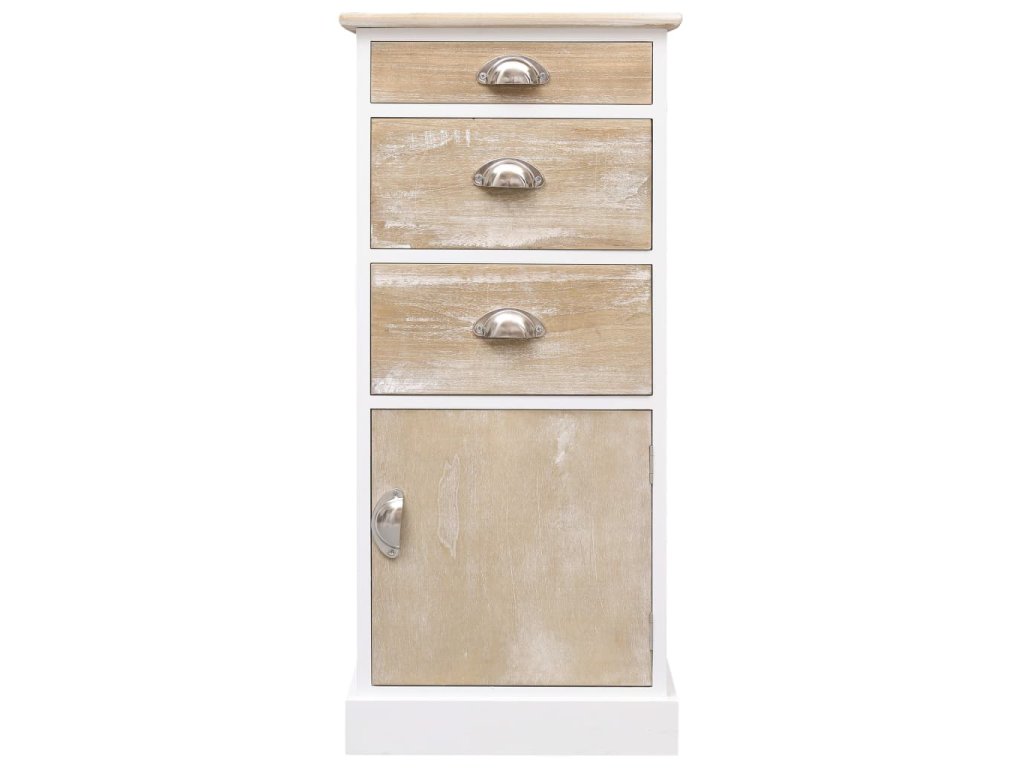 Tato skříňka se zásuvkami je vyrobená ze dřeva pavlovnie a je mimořádně odolná a robustní. Příborník nabízí velký úložný prostor se 3 zásuvkami a 1 dvířky. Robustní horní deska je ideální pro vystavení dekorativních předmětů, fotorámečků nebo pokojových rostlin. Snadno se čistí vlhkým hadříkem. Odkládací skříňka se snadno sestavuje.