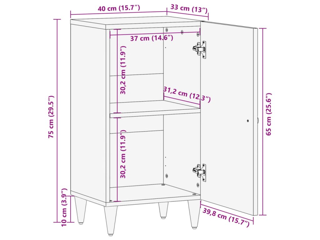 - Masivní mangovníkové dřevo: Masivní mangovníkové dřevo je pevné tropické tvrdé dřevo, ze kterého se vyrábí robustní nábytek. Krásná kresba dřeva propůjčuje každému kusu nábytku jeho jedinečný a od všech ostatních lehce odlišný vzhled. Skříňka je vyrobená z masivního mangovníkového dřeva, je tedy stabilní a odolná.