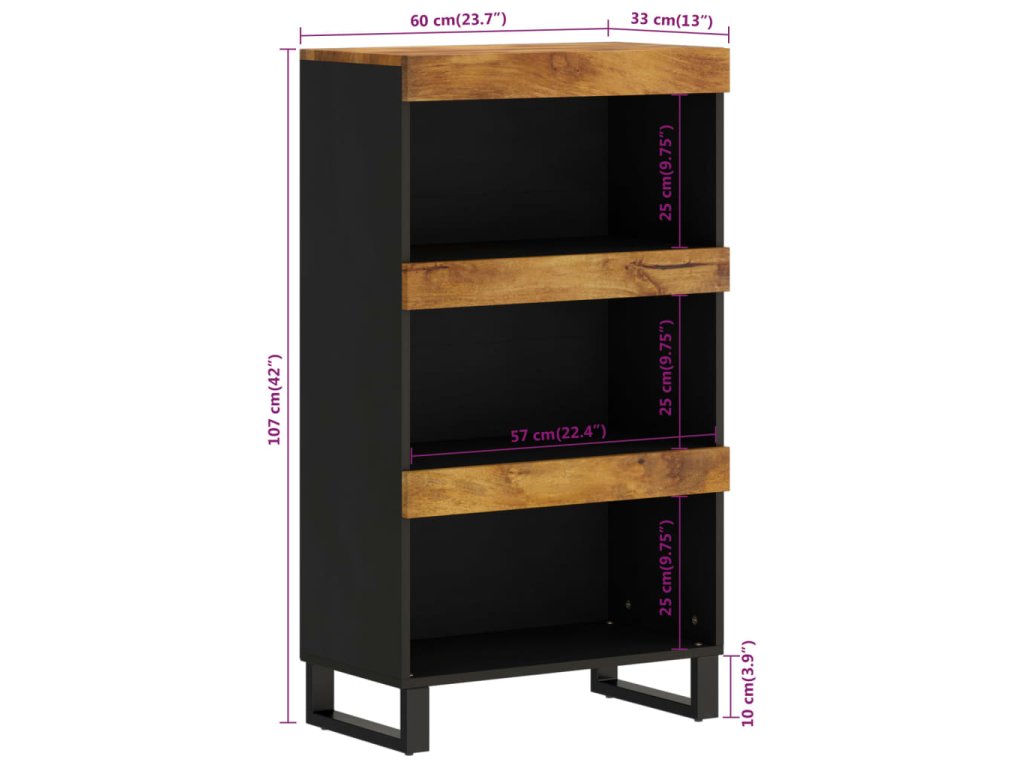 - Masivní mangovníkové dřevo: Tato skříňka je vyrobená z masivního mangovníkového dřeva, tvrdého dřeva s hustou strukturou. Masivní mangovníkové dřevo má nejen dostatečnou pevnost unést značnou váhu, ale také skvěle odolává opotřebení.