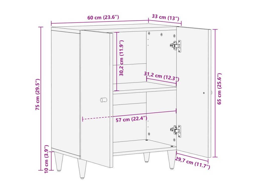- Stabilní nohy: Železné nohy dodávají příborníku robustnost a stabilitu.