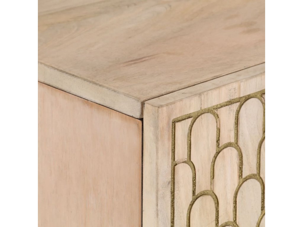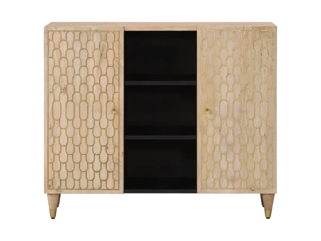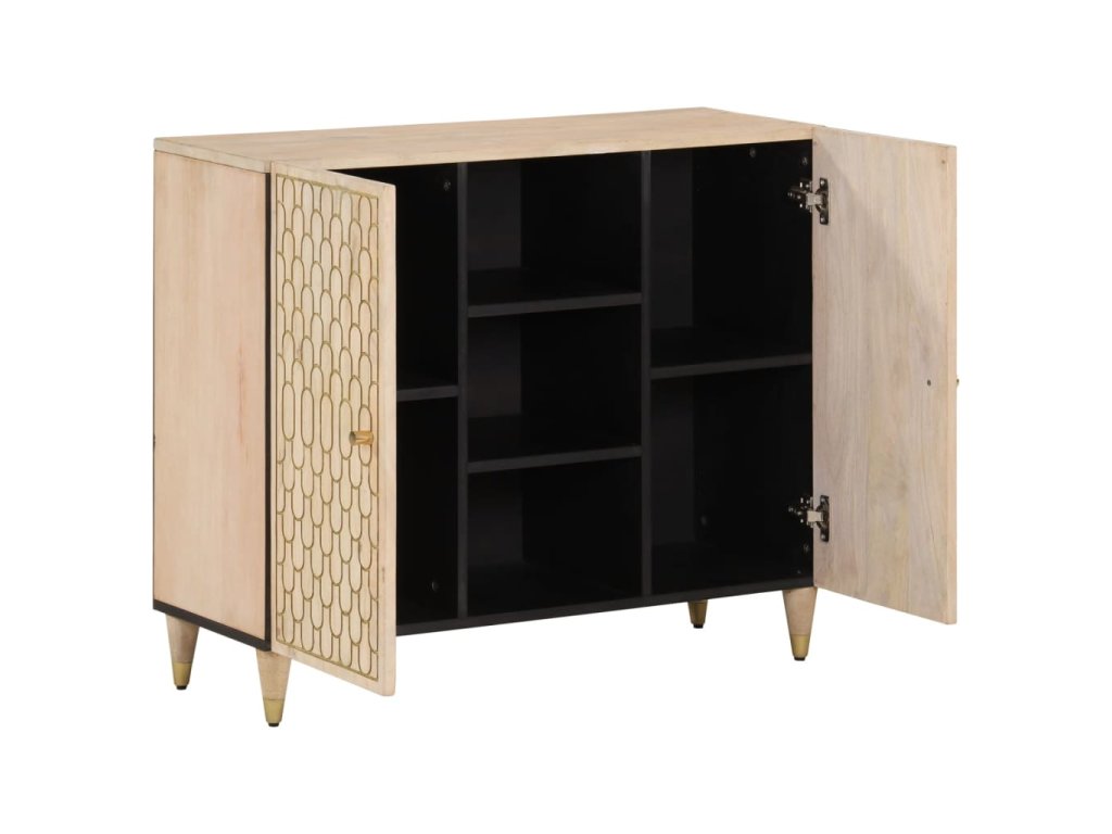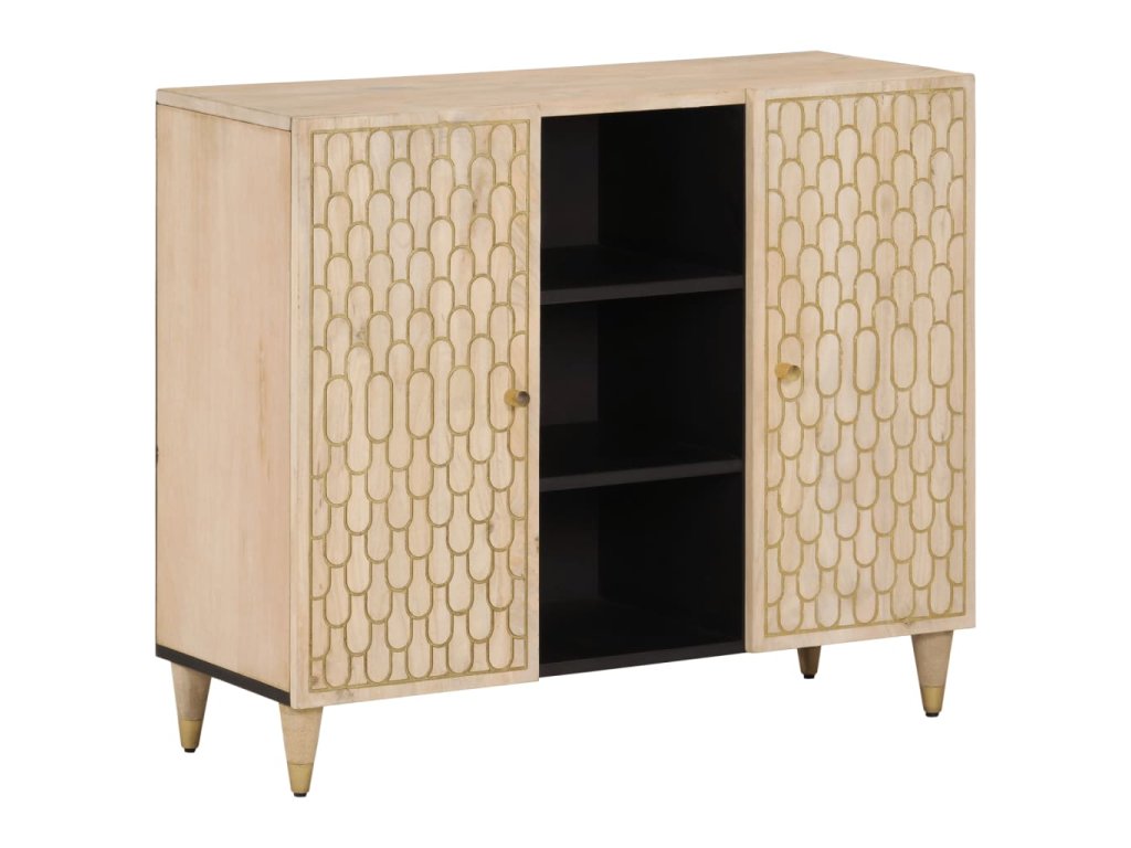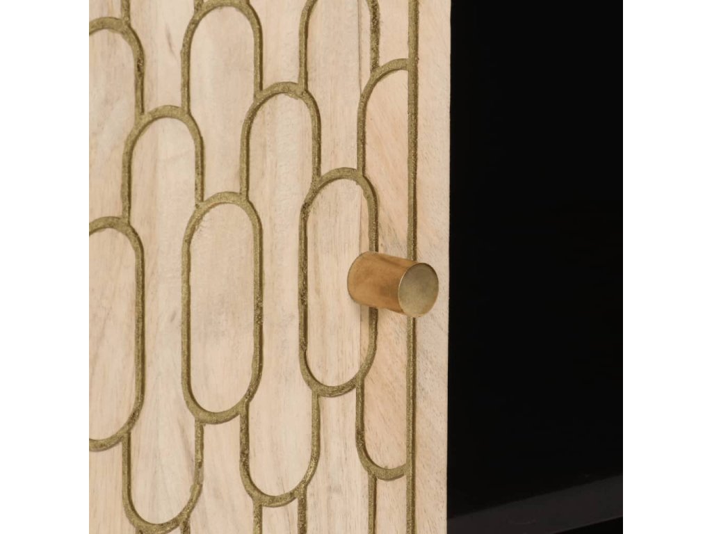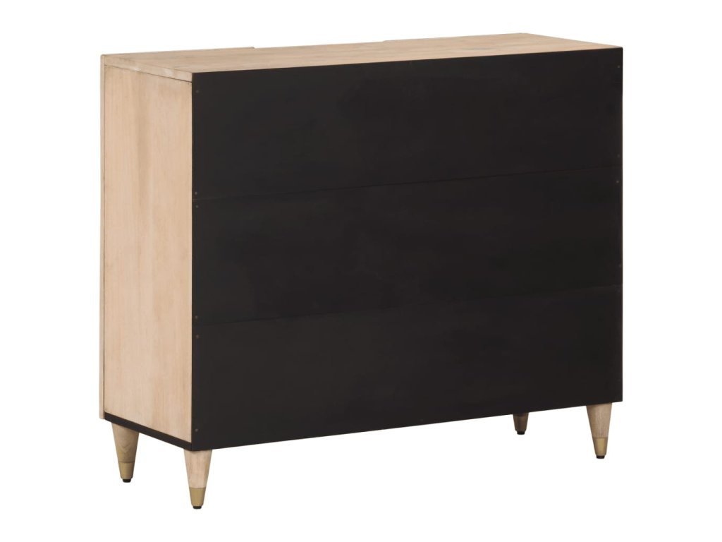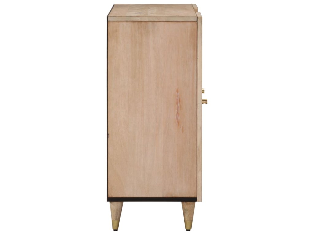 - Masivní mangovníkové dřevo: Masivní mangovníkové dřevo je pevné tropické tvrdé dřevo, ze kterého se vyrábí robustní nábytek. Krásná kresba dřeva propůjčuje každému kusu nábytku jeho jedinečný a od všech ostatních lehce odlišný vzhled. Skříňka je vyrobená z masivního mangovníkového dřeva, je tedy stabilní a odolná.