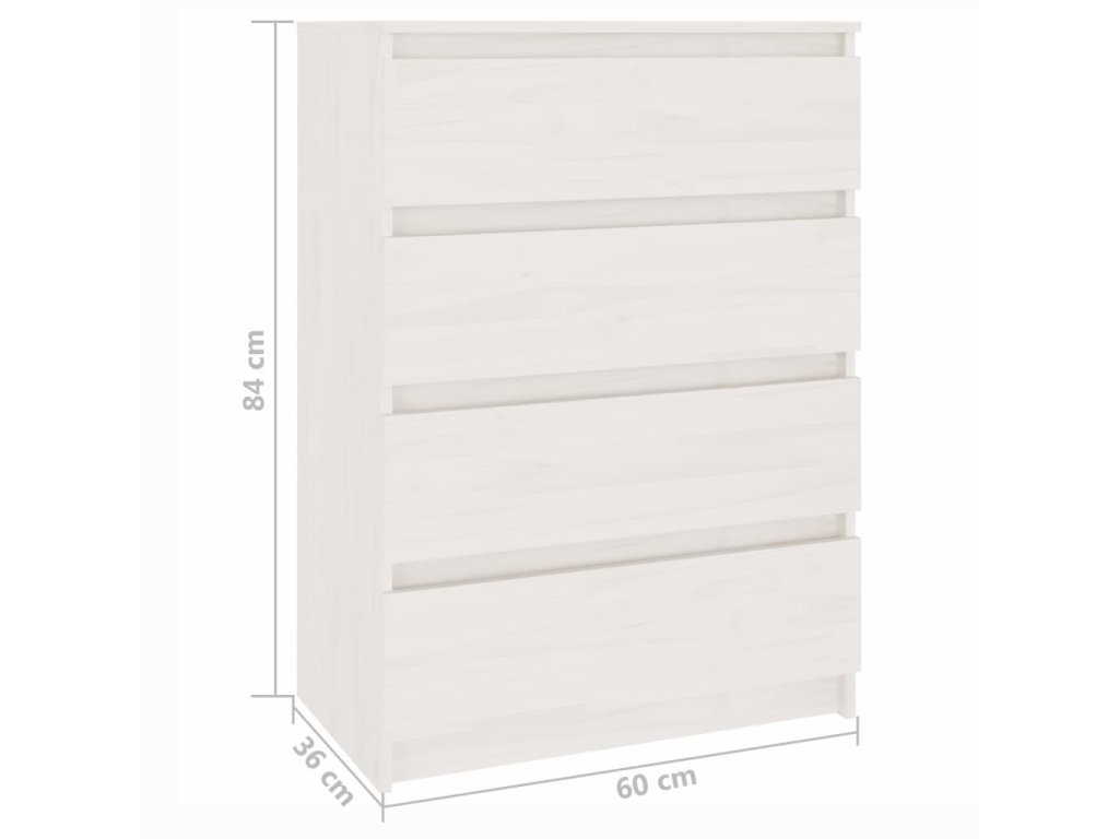 Zásuvková skříň je vyrobena z masivního borového dřeva, takže je stabilní a odolná. 4 zásuvky poskytují dostatek úložného prostoru pro knihy, oblečení a další předměty. Pevná horní deska je také ideální pro vystavení dekorativních předmětů, fotorámečků nebo pokojových rostlin.