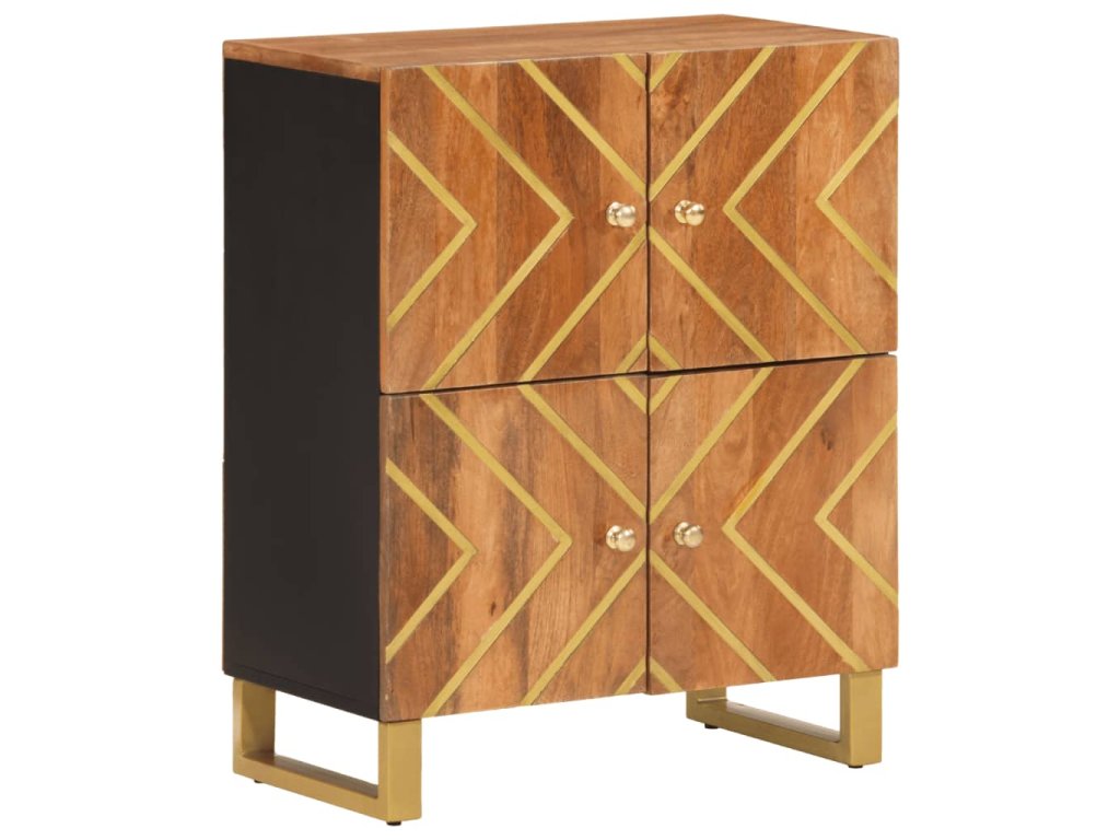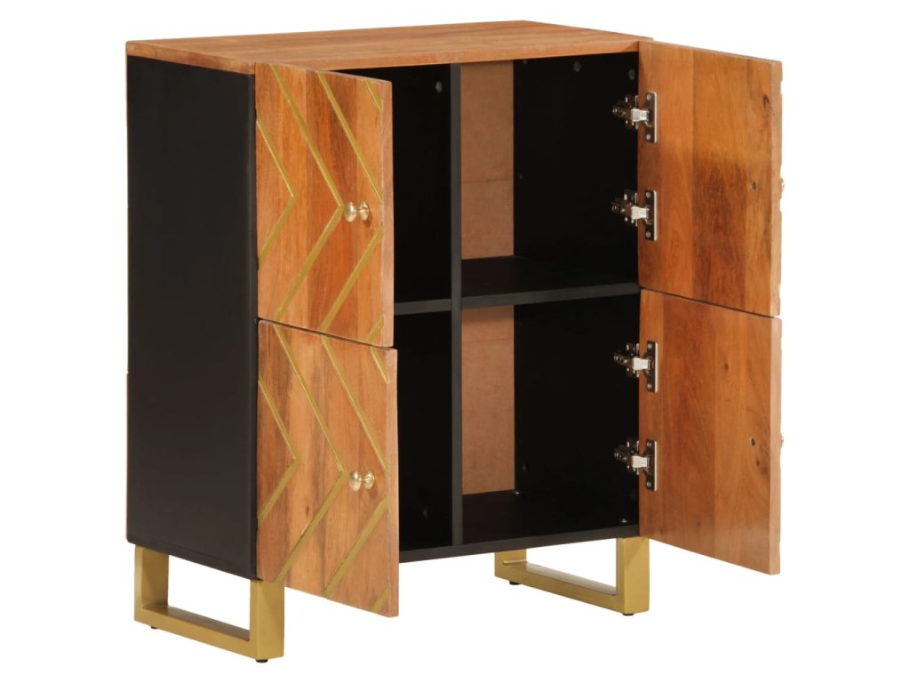 - Masivní mangovníkové dřevo: Masivní mangovníkové dřevo je pevné tropické tvrdé dřevo, ze kterého se vyrábí robustní nábytek. Krásná kresba dřeva propůjčuje každému kusu nábytku jeho jedinečný a od všech ostatních lehce odlišný vzhled. Skříňka je vyrobená z masivního mangovníkového dřeva, je tedy stabilní a odolná.