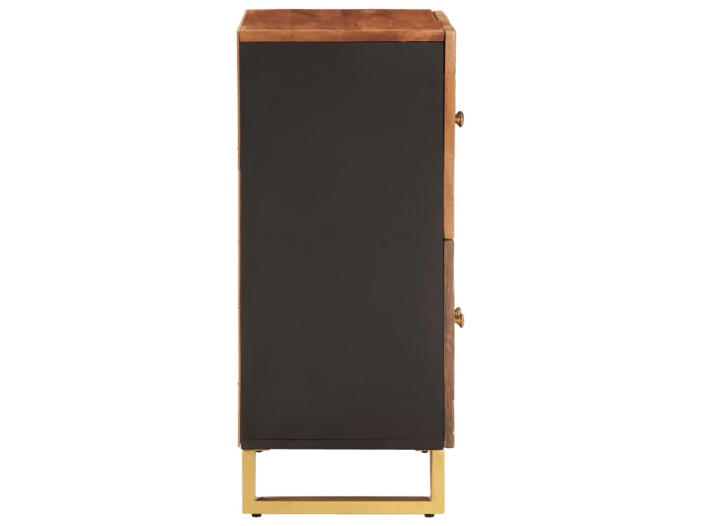 - Materiál: masivní mangovníkové dřevo s akáciově hnědou povrchovou úpravou, MDF, železo