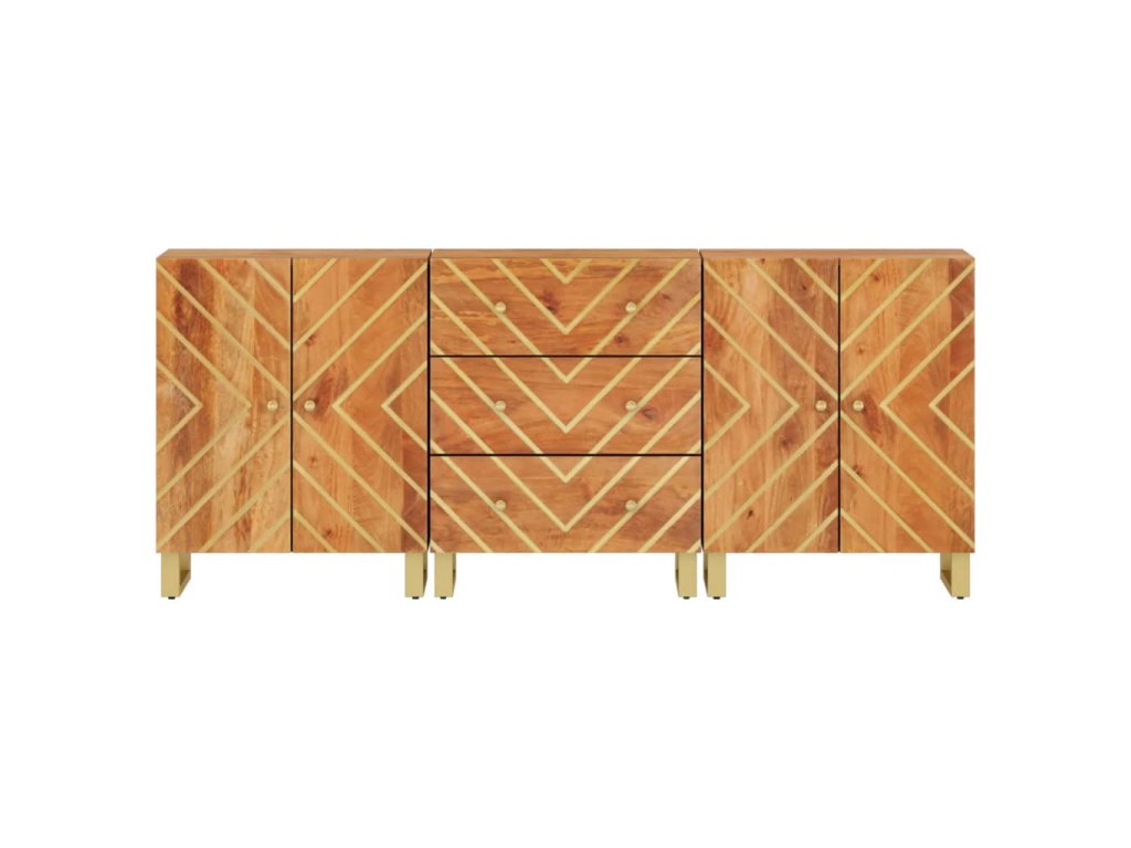 - Masivní mangovníkové dřevo: Masivní mangovníkové dřevo je pevné tropické tvrdé dřevo, ze kterého se vyrábí robustní nábytek. Krásná kresba dřeva propůjčuje každému kusu nábytku jeho jedinečný a od všech ostatních lehce odlišný vzhled. Skříňka je vyrobená z masivního mangovníkového dřeva, je tedy stabilní a odolná.