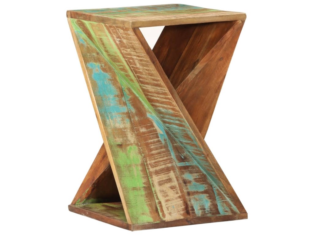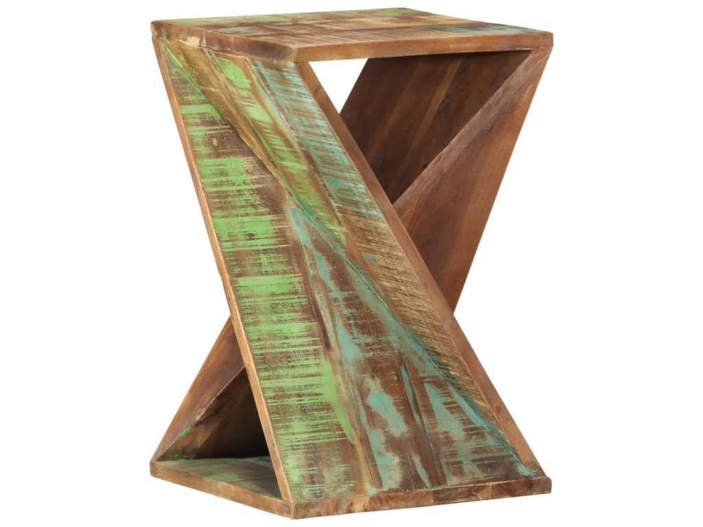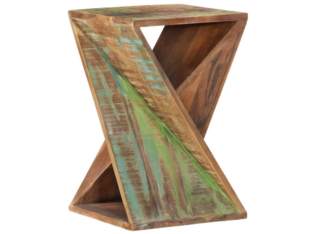 - Masivní dřevo šetrné k životnímu prostředí: Koncový stolek je ručně vyrobený z masivního recyklovaného dřeva. Masivní recyklované dřevo se skládá z opakovaně použitých dřevin, jako je teak, mangovník, borovice a buk. Dřevo pochází ze starých budov, například továren, kůlen a lodí. Jedná se o fantastický materiál pro výrobu nábytku, protože je šetrný k životnímu prostředí.