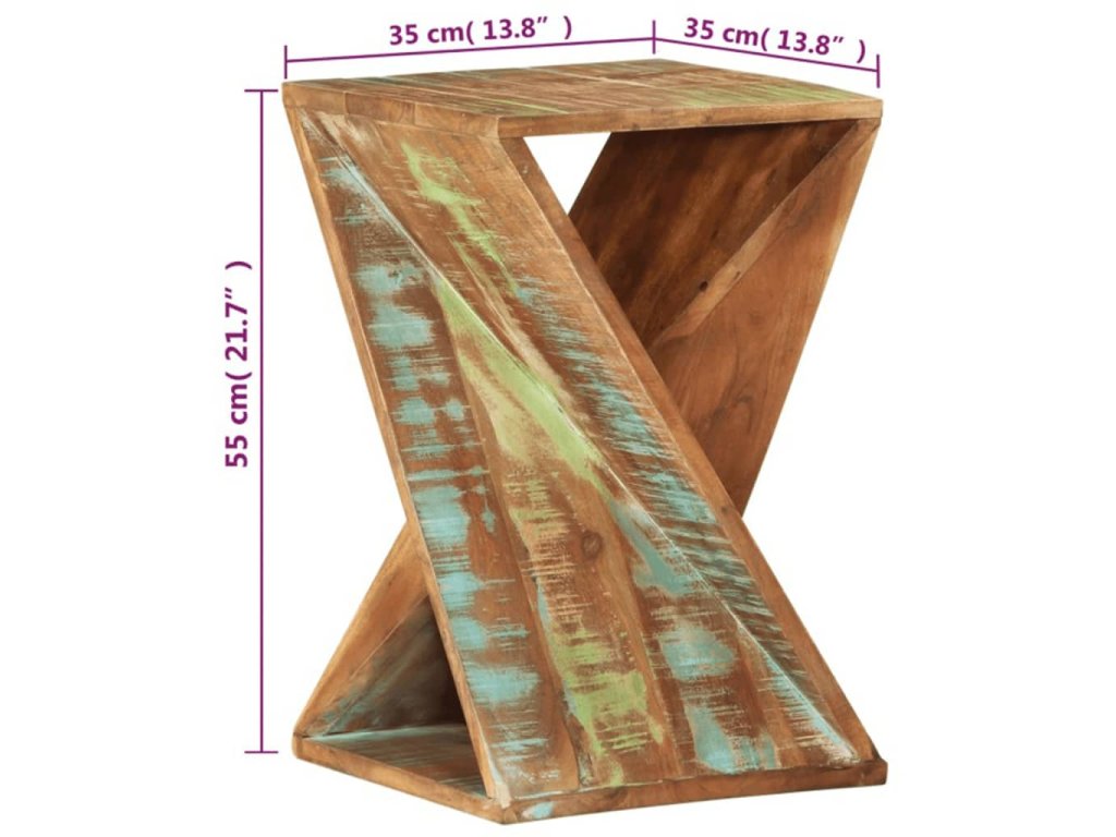 Tento dřevěný odkládací stolek vyrobený z masivního recyklovaného dřeva vyzařuje rustikální kouzlo a bude výrazným doplňkem vašeho domácího interiéru.