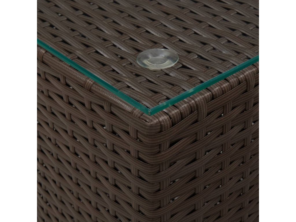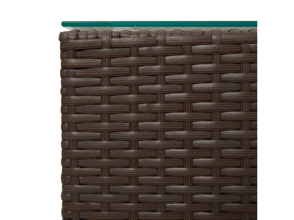 Tento koncový stolek je vyrobený z klimaticky odolného polyratanu, má kovový rám a skleněnou stolní desku. Je odolný a vhodný pro každodenní použití. Má lehkou konstrukci, takže ho můžete snadno přemisťovat podle vašich představ. Akcentový stolek může sloužit také jako stolek k pohovce, čajový stolek a jídelní stolek atd. Snadno se čistí vlhkým hadříkem.