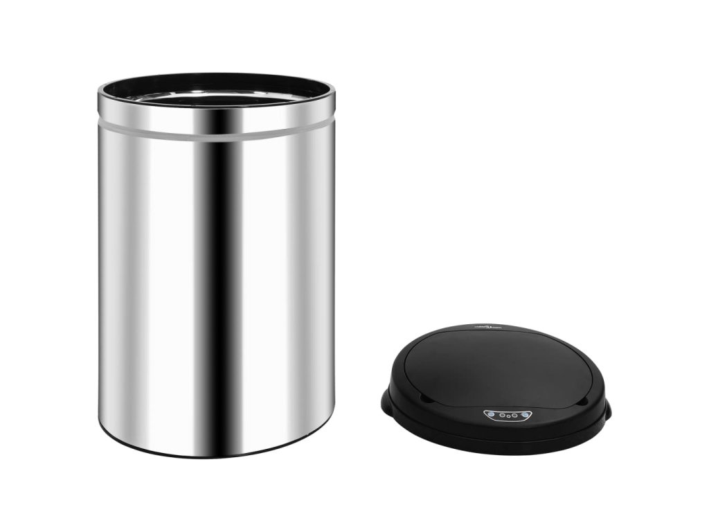 Nádoba koše je vyrobená z nerezové oceli a víko z pevného ABS, koš má tudíž dlouhou životnost a snadno se čistí. Uvnitř je kruh pro upevnění sáčku na odpadky a víko lze snadno sejmout. Pro ruční otevírání a zavírání víka můžete senzor vypnout.