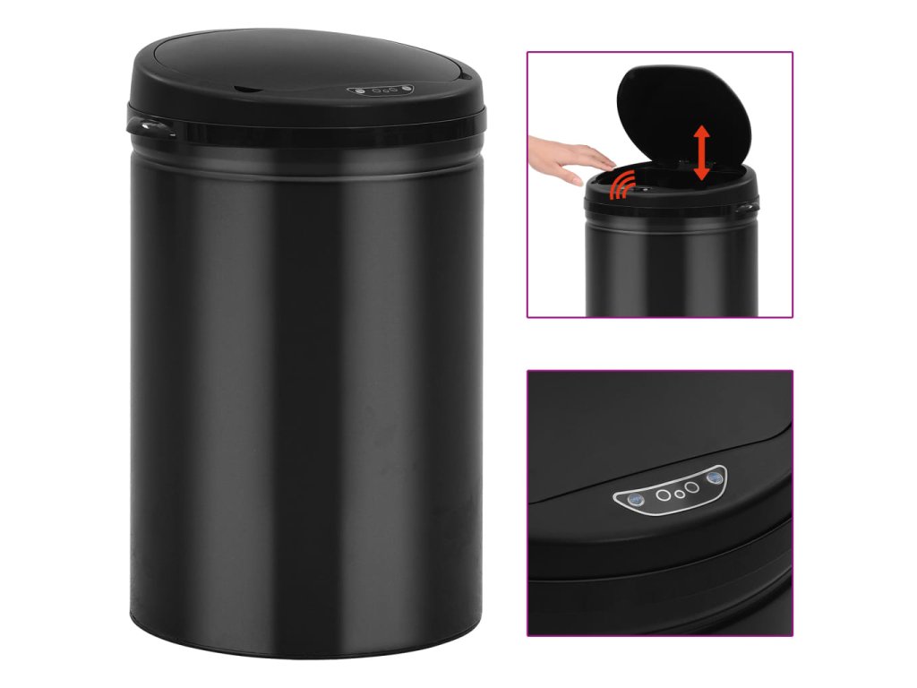 Nádoba koše je vyrobená z uhlíkové oceli a víko z pevného ABS, koš má tudíž dlouhou životnost a snadno se čistí. Uvnitř je kruh pro upevnění sáčku na odpadky a víko lze snadno sejmout. Pro ruční otevírání a zavírání víka můžete senzor vypnout.