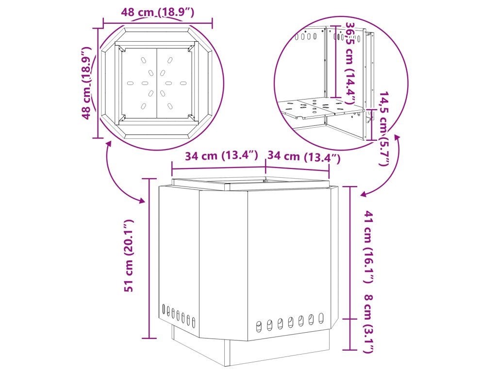 Tohle ohniště na dřevo je ideální na venku, přidá teplo a dobrou atmosféru, skvělé na setkání v chladných večerech. Díky jednoduchému designu a obdélníkovému tvaru se snadno vejde do jakéhokoli venkovního prostoru, promění tvůj balkon nebo patio na útulné místo.