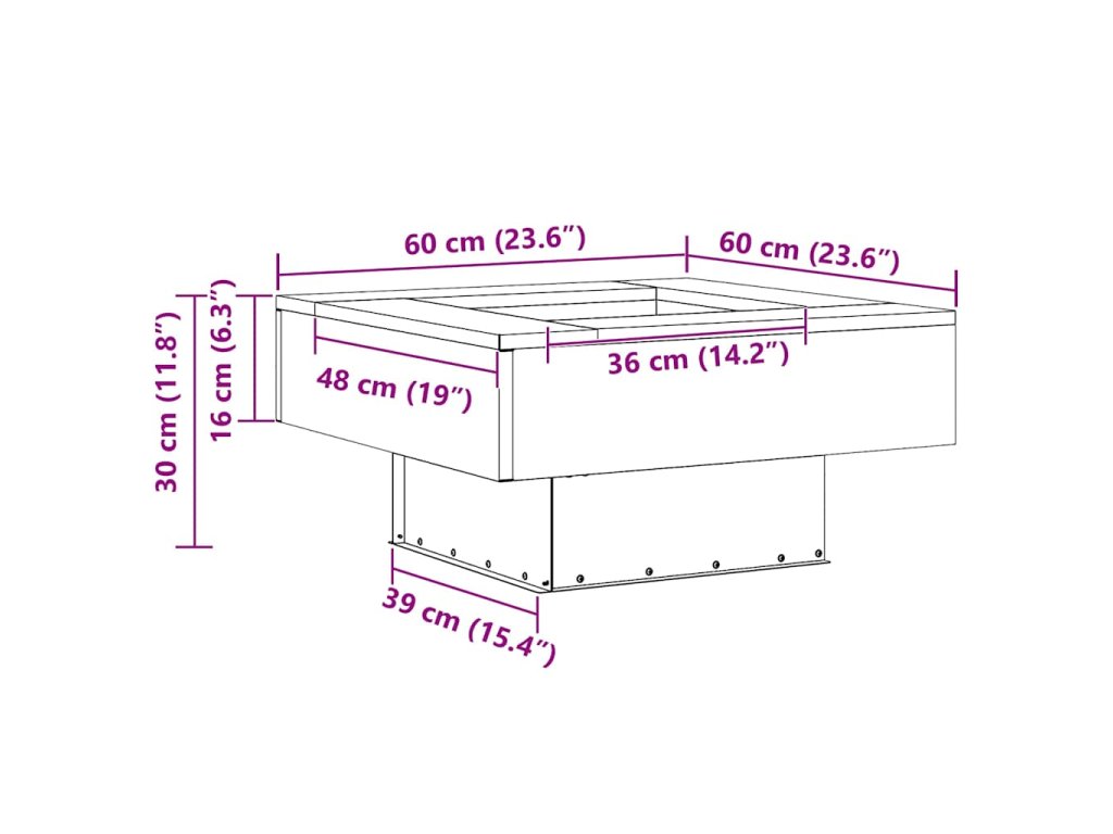 - Celkové rozměry: 60 x 60 x 30 cm (D x Š x V)