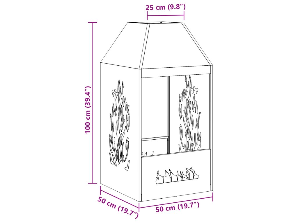 Toto rustikální ohniště z odolné oceli přetváří tvé venkovní prostory na příjemná místa, ideální pro setkání s přáteli a rodinou a užívání si tepla pod hvězdami. Určeno pouze pro venkovní použití, jeho zvětralý vzhled dodává kouzlo každému balkonu nebo terase a vytváří skvělý středobod večerních setkání.
