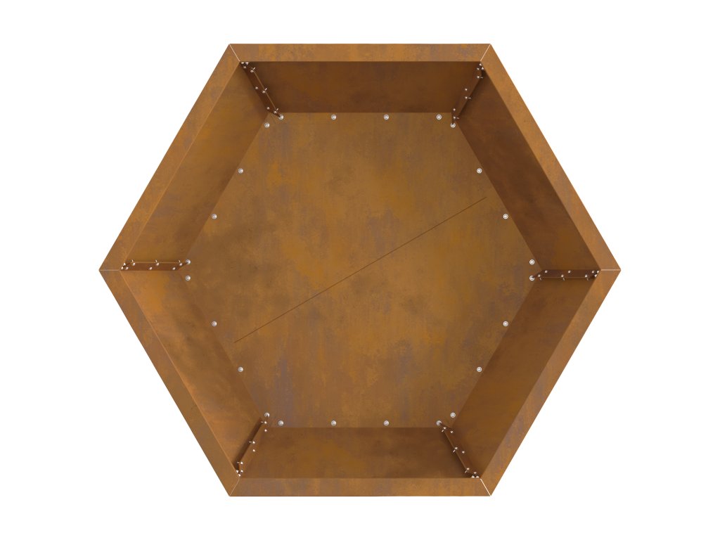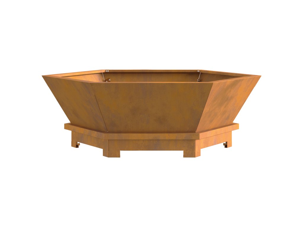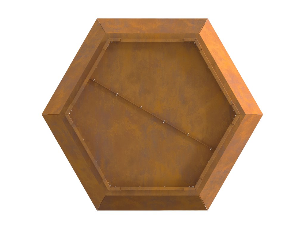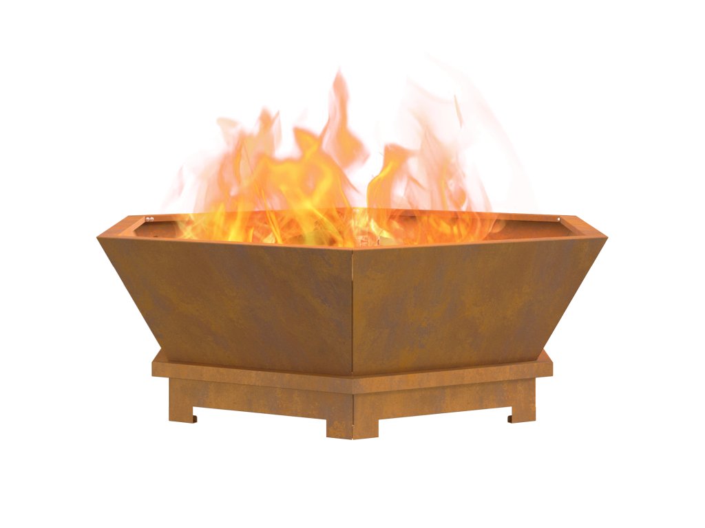 - Šestiúhelníkový tvar: Unikátní design dává ohništi výraznost a atraktivní vzhled, zatímco poskytuje dostatek prostoru pro klády a podporuje přátelskou atmosféru sezení pro tvoje kamarády a rodinu.