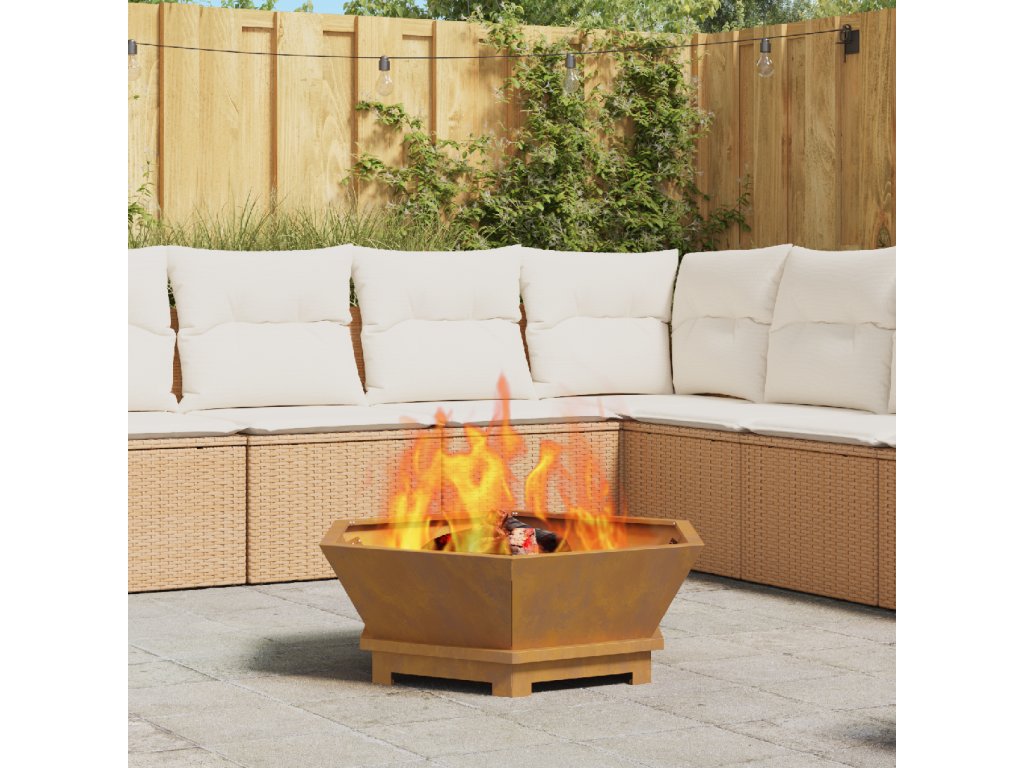 Toto rustikální šestiúhelníkové ohniště je přesně to, co potřebuješ pro venkovní prostor, navržené tak, aby zahřálo a vytvořilo pohodovou atmosféru pro strávení času s rodinou a přáteli. Vyrobeno z pevné weathering oceli, jeho stylový vzhled dodává teplo a atmosféru na tvém dvorku, balkoně či zahradě s cool texturou a vintage povrchovou úpravou.