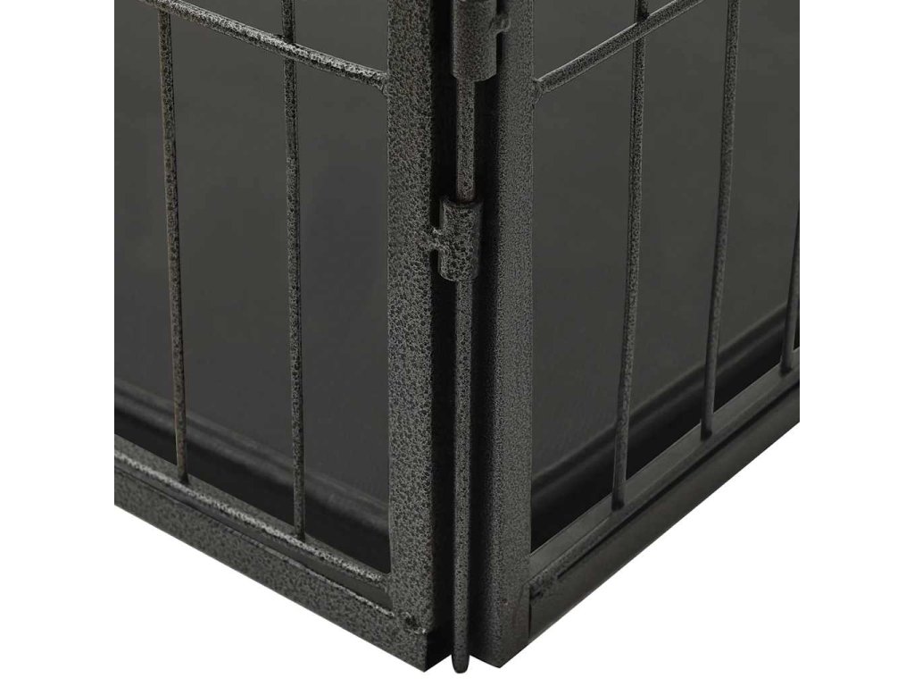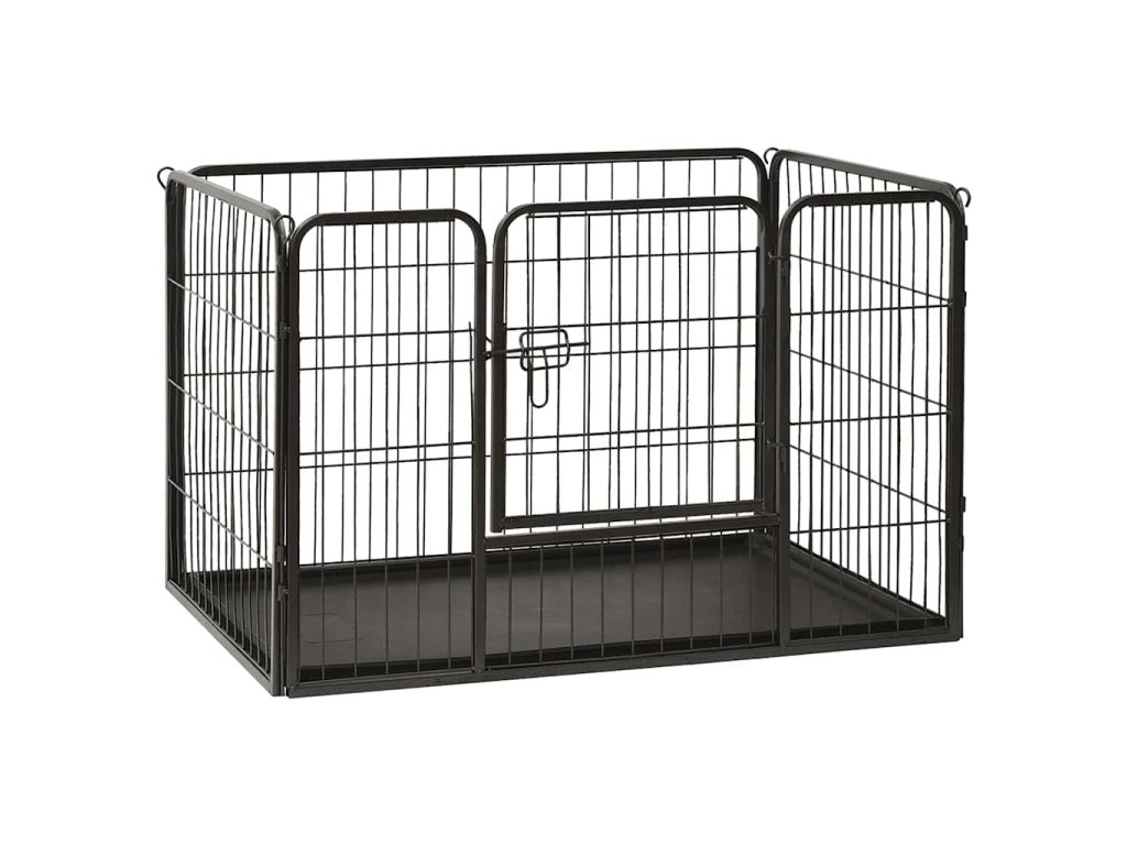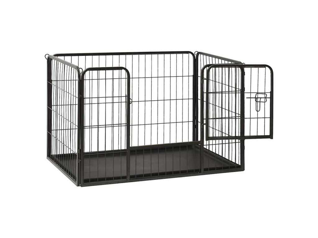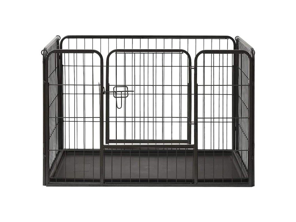 Tuto ohrádku pro psy lze snadno sestavit a rozložit. Disponuje závěsnými dvířky s bezpečnostní západkou, která umožňují snadný přístup. Ohrádka je pevná, odolná vůči povětrnostním vlivům a vyrobená z nerezové oceli s práškovým nástřikem, takže je vhodná pro venkovní i vnitřní použití. Součástí balení je i spodní plastové dno.