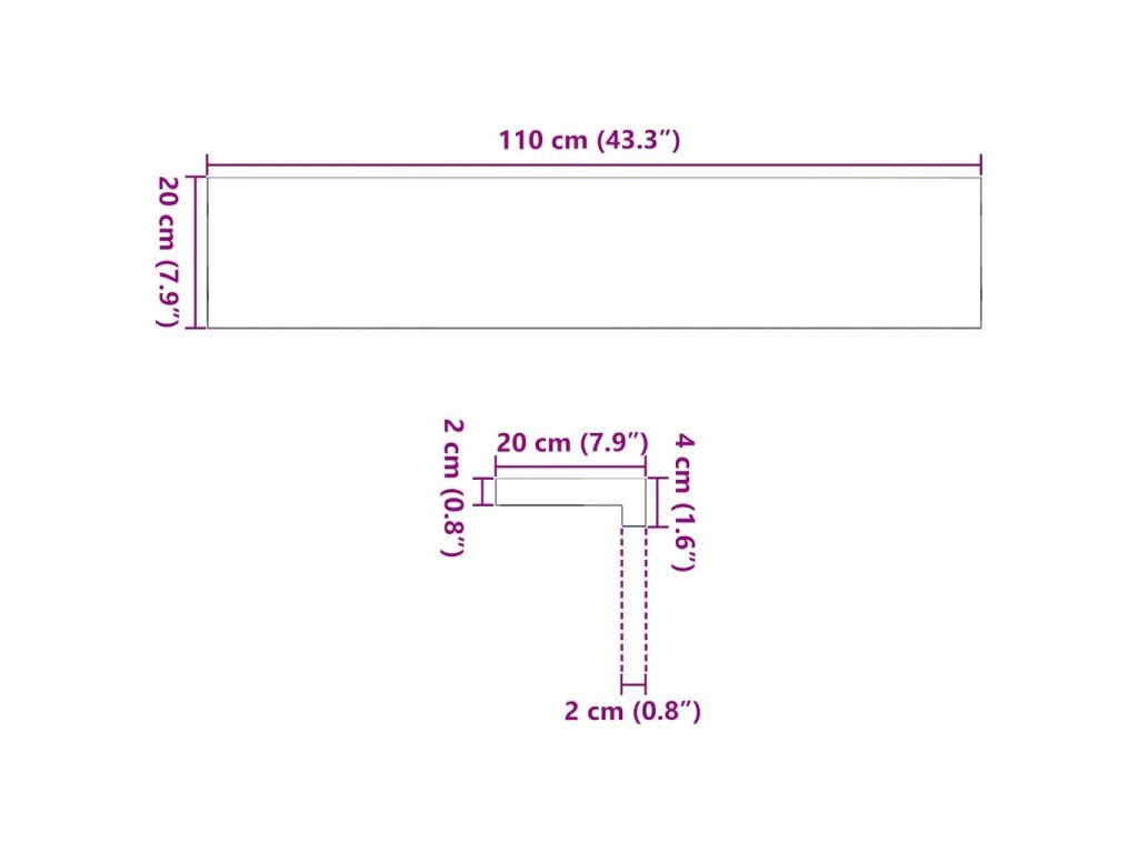 110 x 20 x 2 cm