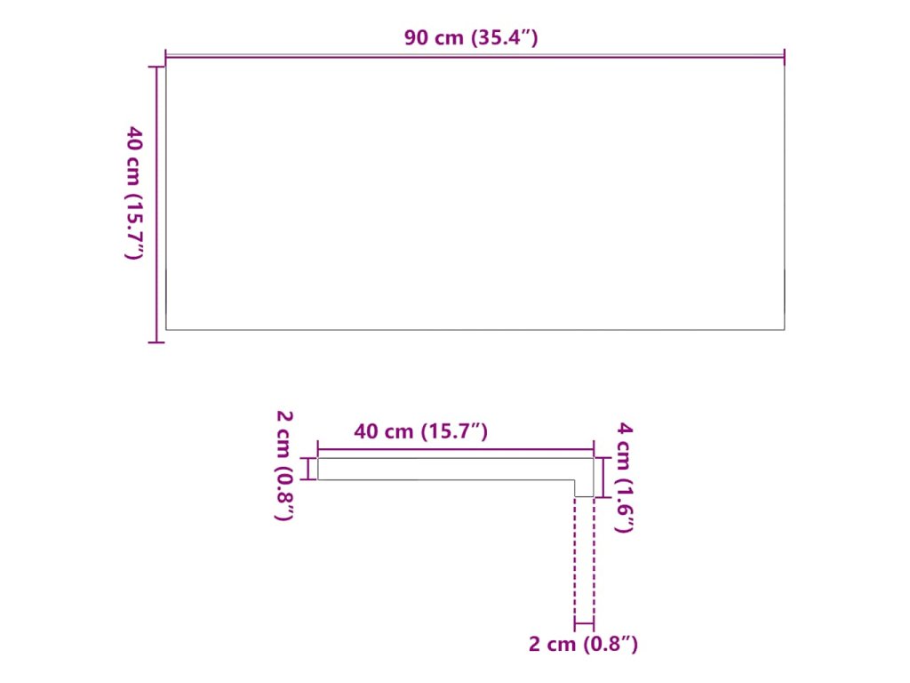 90 x 40 x 2 cm