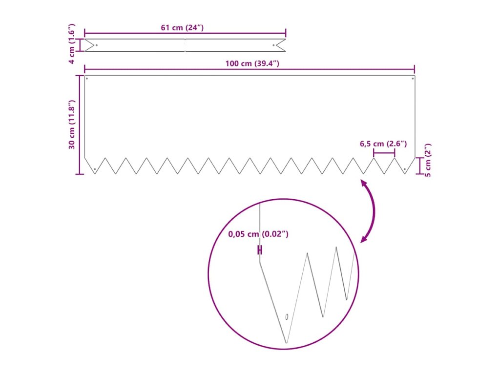 Tento zahradní obrubník je stylové a čisté řešení, jak vymezit prostory venku. Skvěle se hodí na zahrady a terasy a pěkně odděluje trávník, květinové záhony a chodníky, což vytváří úhlednou a příjemnou krajinu. Elegantní design se snadno hodí k různým stylům venkovního dekoru a zlepšuje celkový vzhled vaší zahrady, přičemž usnadňuje údržbu.
