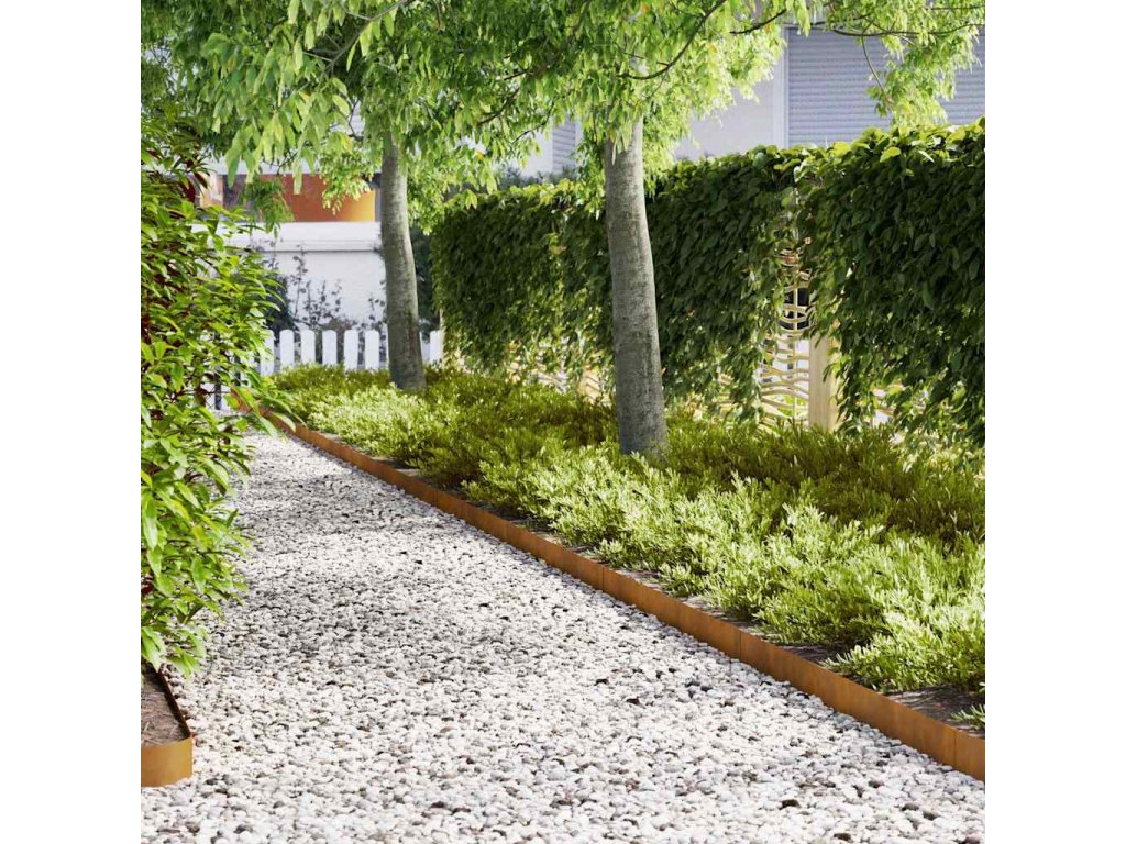 Tento zahradní obrubník je stylové a čisté řešení, jak vymezit prostory venku. Skvěle se hodí na zahrady a terasy a pěkně odděluje trávník, květinové záhony a chodníky, což vytváří úhlednou a příjemnou krajinu. Elegantní design se snadno hodí k různým stylům venkovního dekoru a zlepšuje celkový vzhled vaší zahrady, přičemž usnadňuje údržbu.