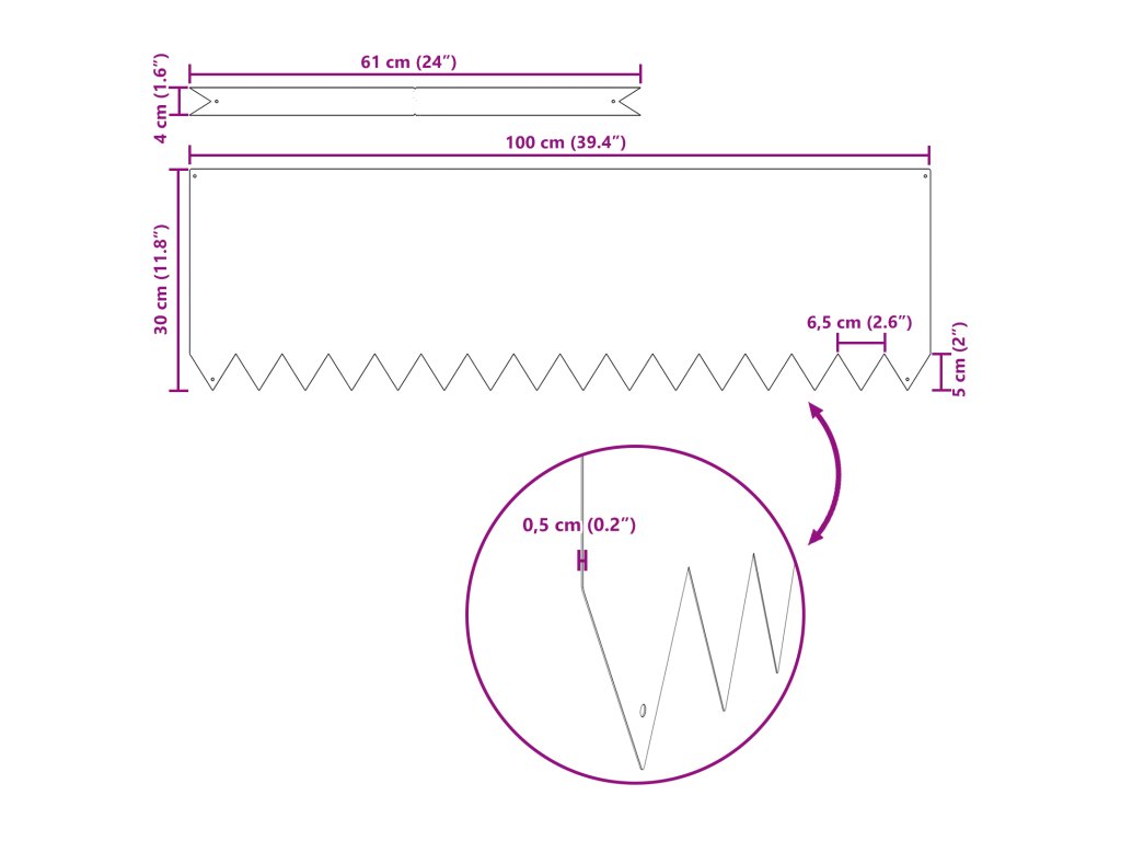 - Každý kus obruby měří 100 x 0.5 x 30 cm, ideální pro vymezení zahradních prostor.