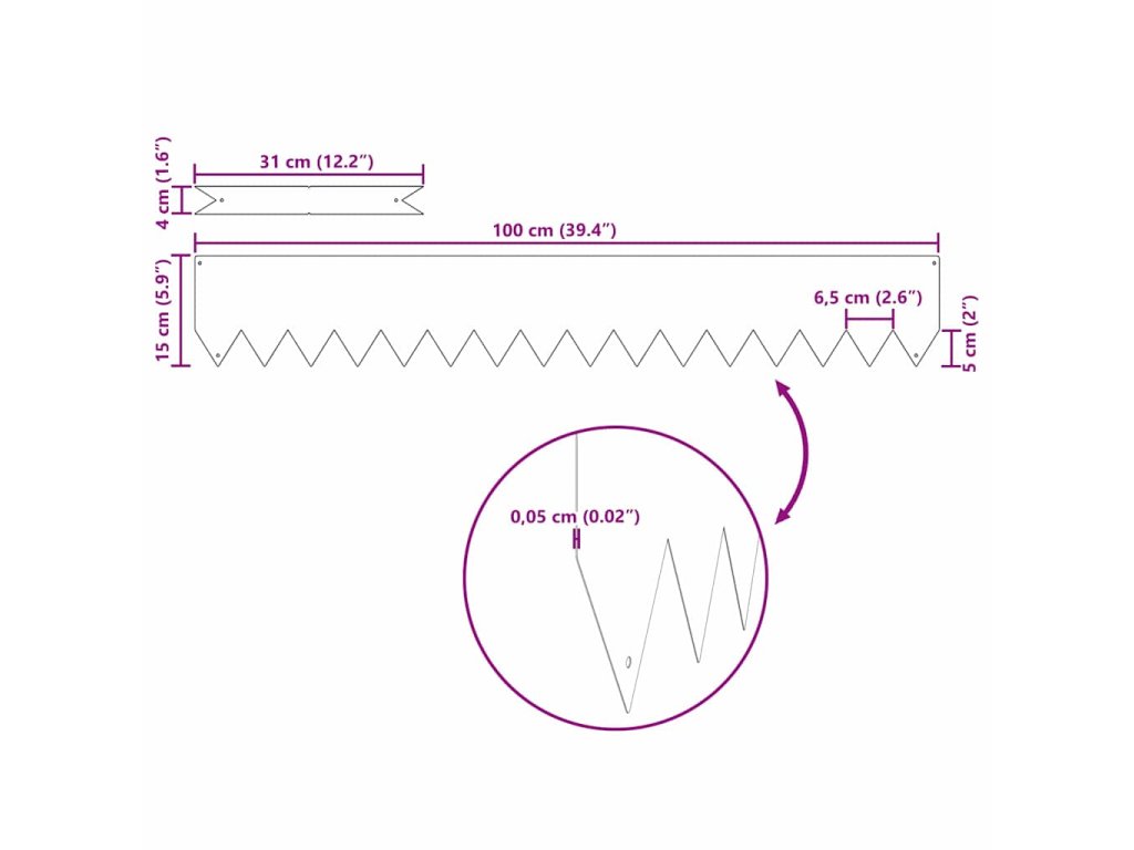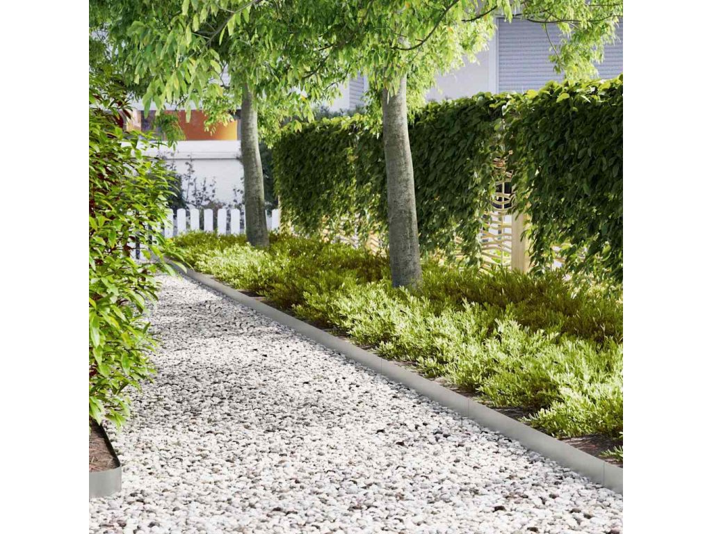 Tento zahradní obrubník je stylové a čisté řešení, jak vymezit prostory venku. Skvěle se hodí na zahrady a terasy a pěkně odděluje trávník, květinové záhony a chodníky, což vytváří úhlednou a příjemnou krajinu. Elegantní design se snadno hodí k různým stylům venkovního dekoru a zlepšuje celkový vzhled vaší zahrady, přičemž usnadňuje údržbu.