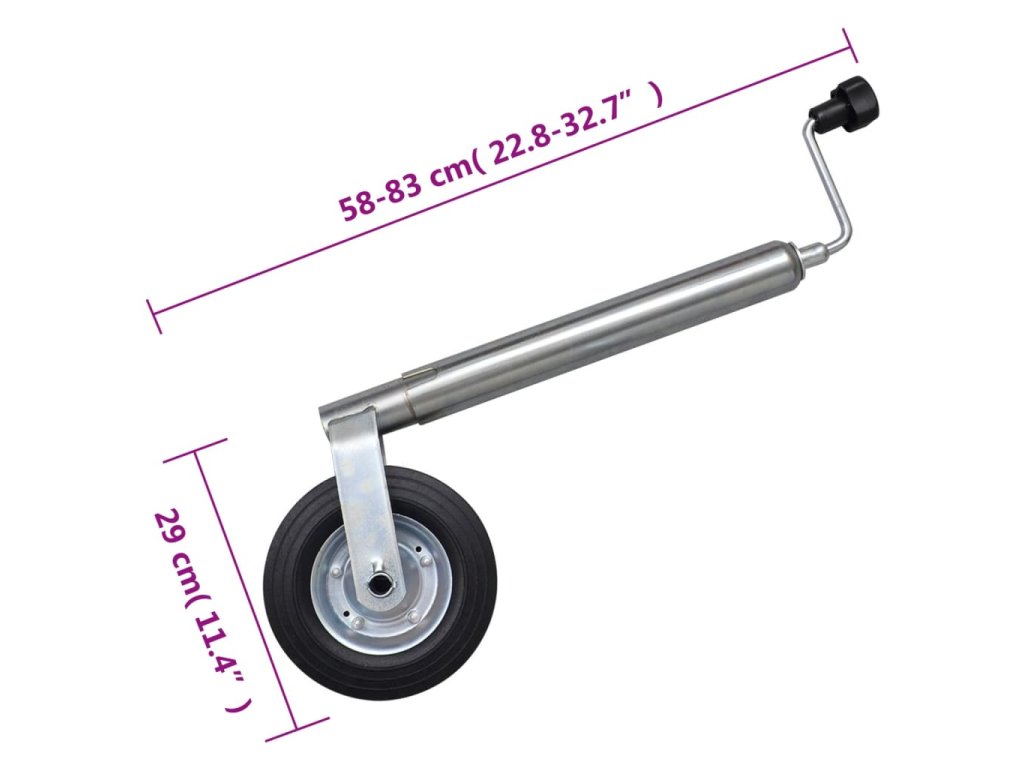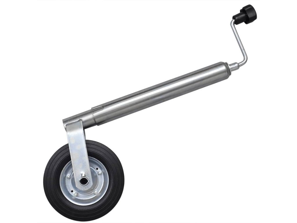 - Opěrné kolo: Je vyrobeno z vysoce kvalitní pozinkované oceli, je odolné proti korozi a robustní s maximální nosností 150 kg, takže je vhodné pro použití s malými až středně velkými přívěsy a karavany. Pevná gumová pneumatika pomáhá po nasazení kola snadno pohybovat s přívěsem.