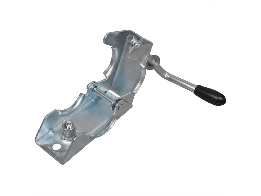 - Praktická dělená svorka: Dělená svorka je na konci rukojeti vybavena gumovou rukojetí pro snadnější manévrování. Pro otevření nebo zavření svorky stačí šroubovat ve směru nebo proti směru hodinových ručiček. Snadno se otevírá pro rychlé odstranění podpěrných stojanů a opěrných kol, takže proces instalace i demontáže je plynulý a efektivní.