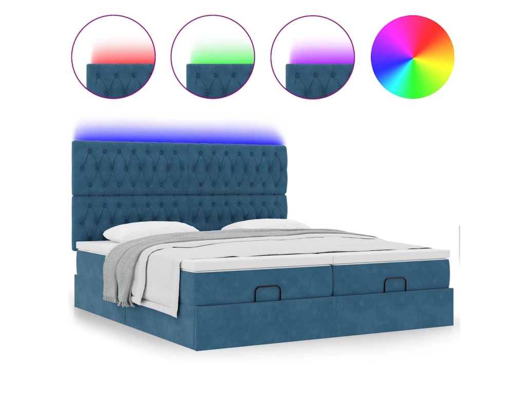 - Světla LED pro příjemnou atmosféru: Tato postel je vybavena LED osvětlením, které lze snadno nastavit a vytvořit tak individuální světelnou atmosféru. Umožňuje přizpůsobit režimy, barvy a jas, abyste si vytvořili příjemnou atmosféru svého interiéru.