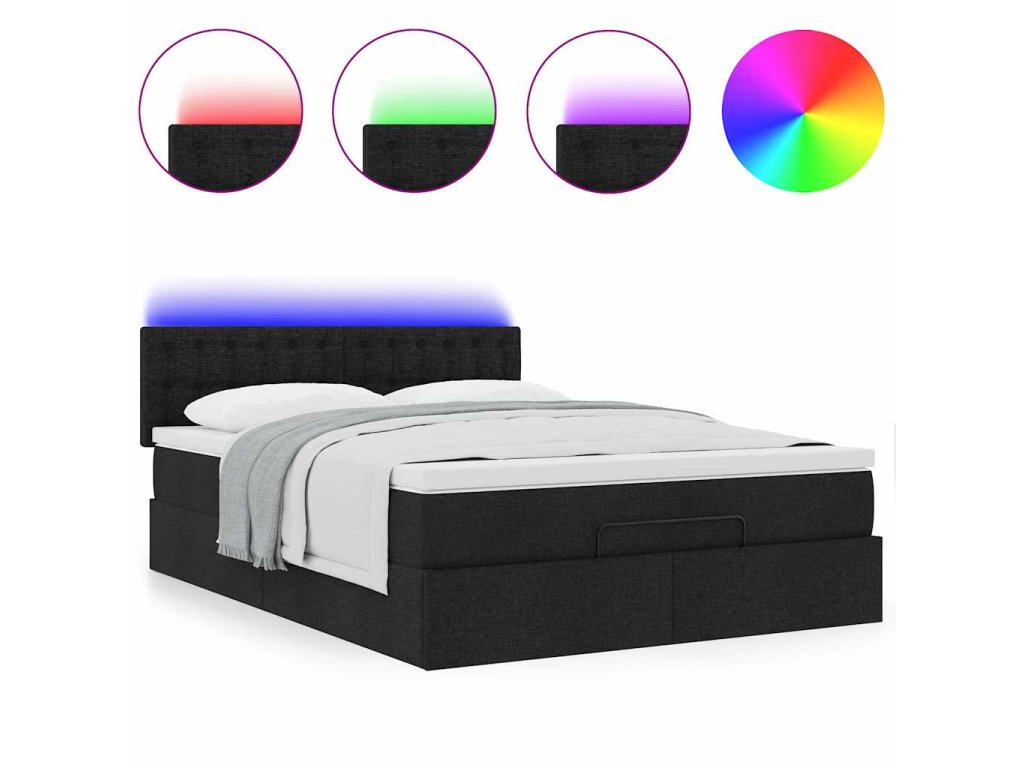 - Světla LED pro příjemnou atmosféru: Tato postel je vybavena LED osvětlením, které lze snadno nastavit a vytvořit tak individuální světelnou atmosféru. Umožňuje přizpůsobit režimy, barvy a jas, abyste si vytvořili příjemnou atmosféru svého interiéru.