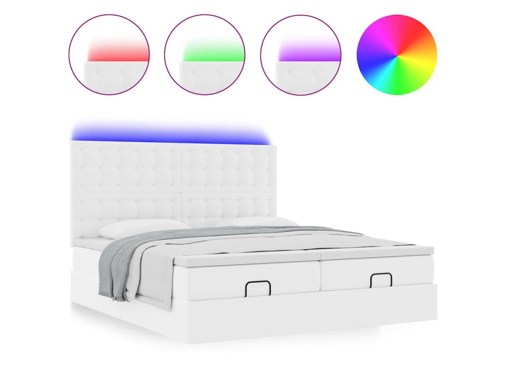 - Světla LED pro příjemnou atmosféru: Tato postel je vybavena LED osvětlením, které lze snadno nastavit a vytvořit tak individuální světelnou atmosféru. Umožňuje přizpůsobit režimy, barvy a jas, abyste si vytvořili příjemnou atmosféru svého interiéru.