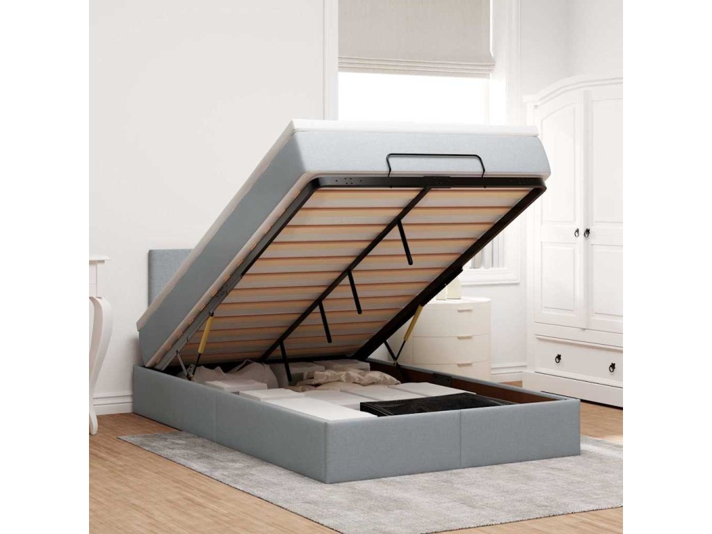 Tato postel s otomanem dokonale spojuje moderní estetiku s praktickou funkčností a nabízí vám jak řešení úložného prostoru, tak pohodlné spaní.