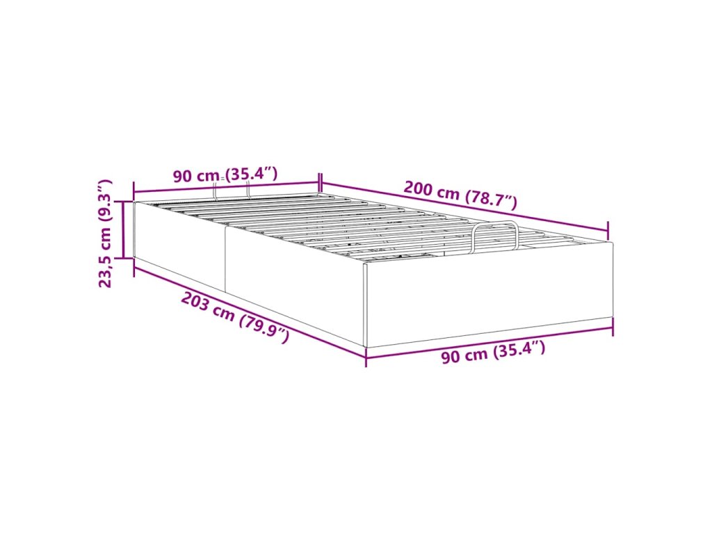 - Celkové rozměry: 203 x 90 x 23,5 cm (D x Š x V)