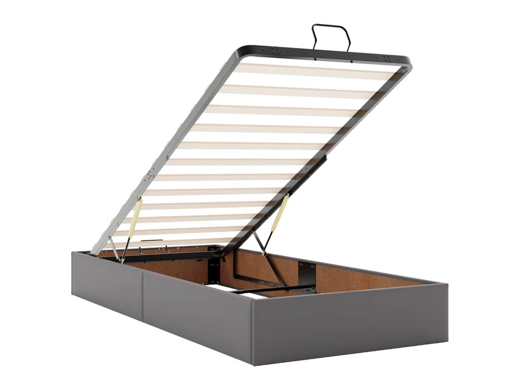 - Pohodlný zvedací mechanismus: Integrovaný hydraulický zvedací mechanismus umožňuje snadný přístup k vašim věcem uloženým pod postelí. Jednoduchým zatažením za rukojeť se základna roštu hladce zvedne a umožní vám rychle a bez námahy vyndat vaše věci.