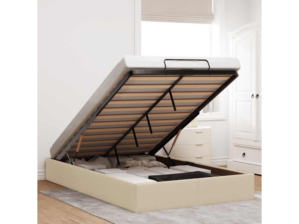 Tento rám postele s otomanem dokonale kombinuje moderní estetiku s praktickou funkčností a nabízí vám jak řešení úložného prostoru, tak pohodlné spaní.