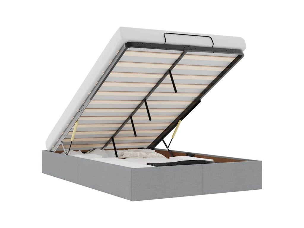 - Pohodlný zvedací mechanismus: Integrovaný hydraulický zvedací mechanismus umožňuje snadný přístup k vašim věcem uloženým pod postelí. Jednoduchým zatažením za rukojeť se základna roštu hladce zvedne a umožní vám rychle a bez námahy vyndat vaše věci.