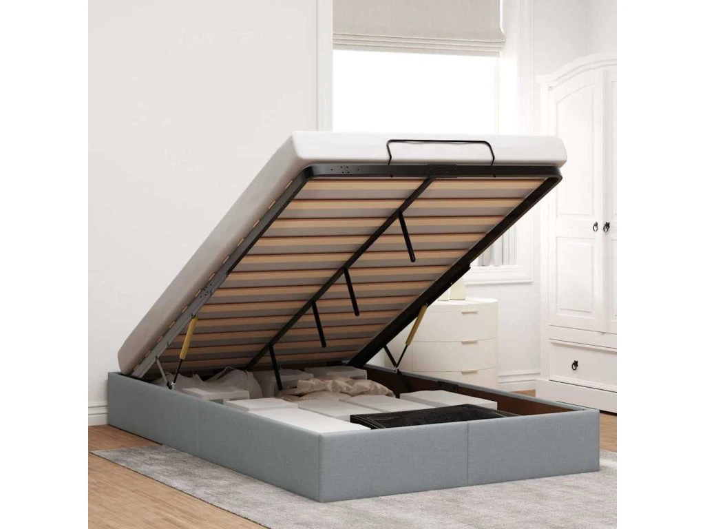 Tento rám postele s otomanem dokonale kombinuje moderní estetiku s praktickou funkčností a nabízí vám jak řešení úložného prostoru, tak pohodlné spaní.