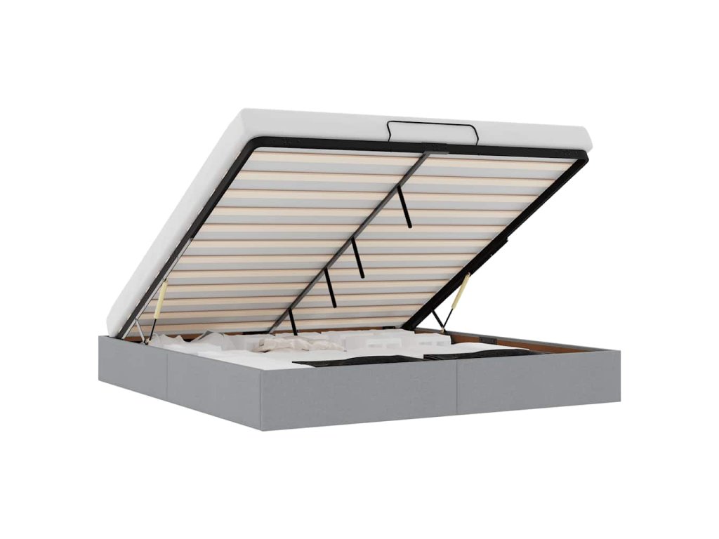 - Pohodlný zvedací mechanismus: Integrovaný hydraulický zvedací mechanismus umožňuje snadný přístup k vašim věcem uloženým pod postelí. Jednoduchým zatažením za rukojeť se základna roštu hladce zvedne a umožní vám rychle a bez námahy vyndat vaše věci.