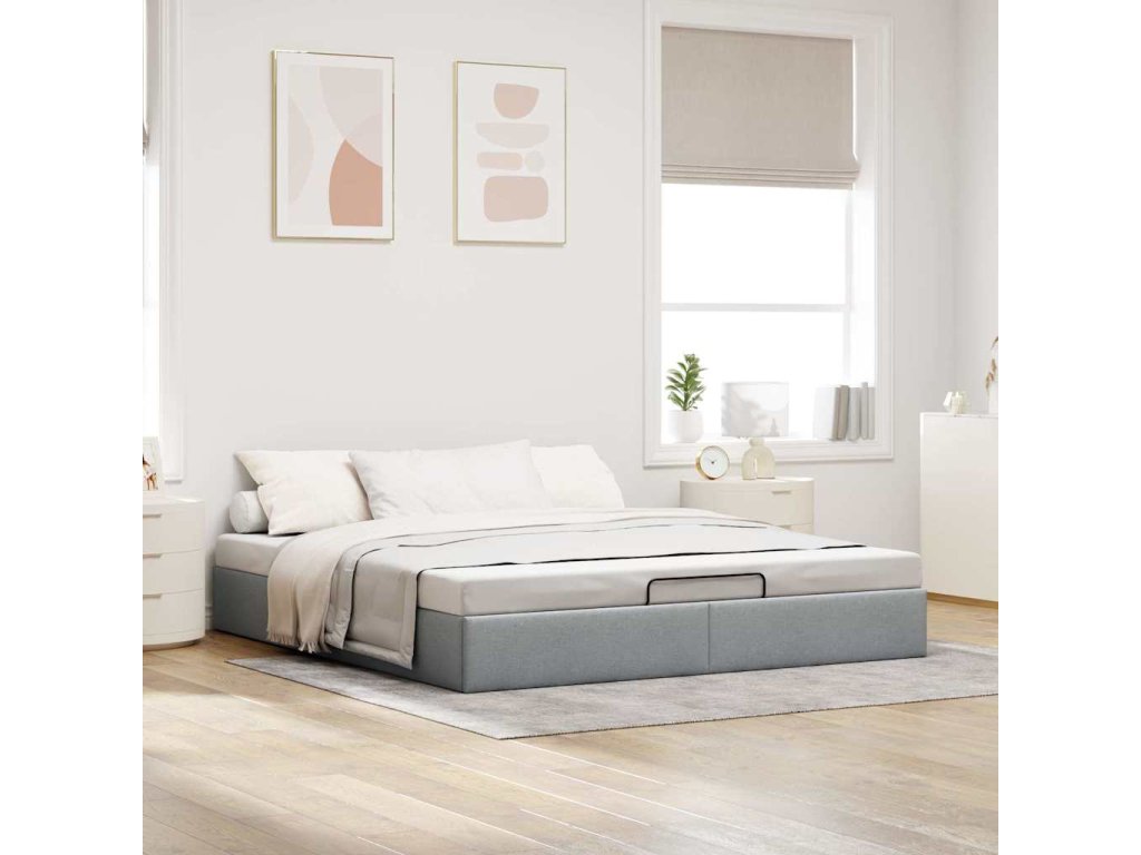 Tento rám postele s otomanem dokonale kombinuje moderní estetiku s praktickou funkčností a nabízí vám jak řešení úložného prostoru, tak pohodlné spaní.