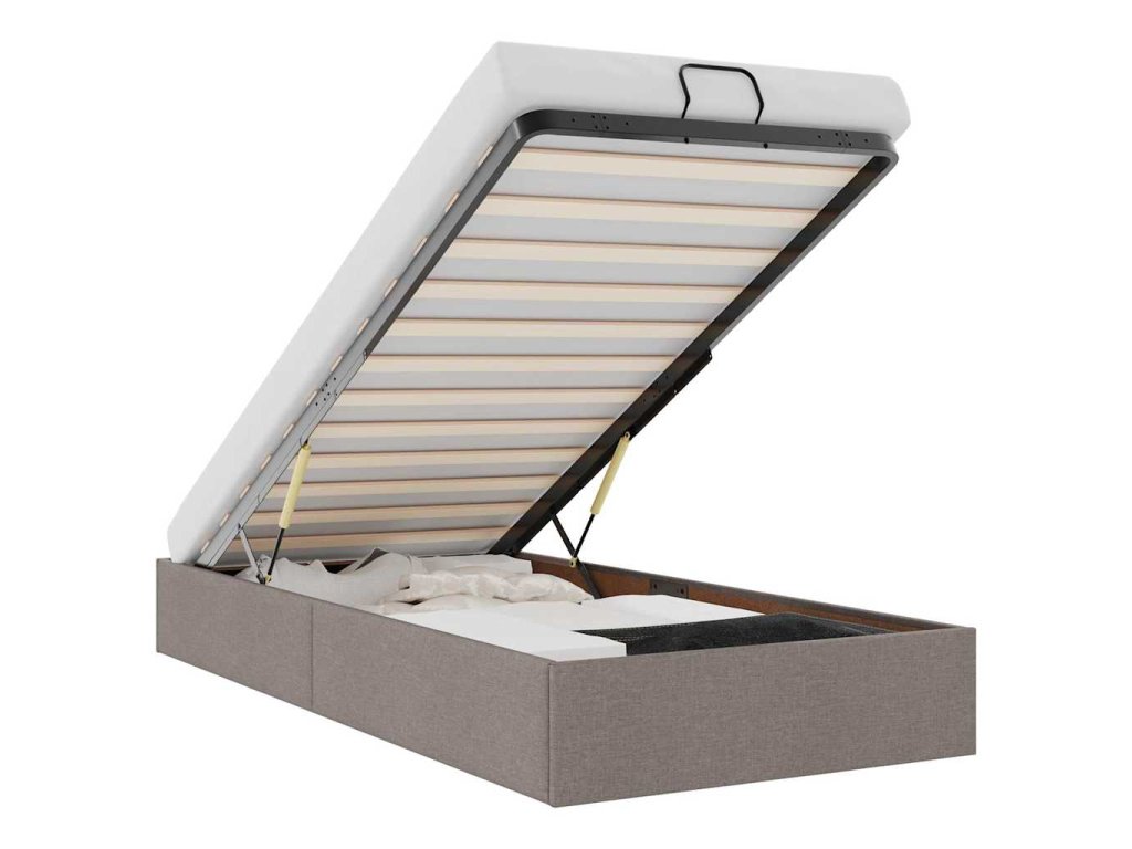 - Pohodlný zvedací mechanismus: Integrovaný hydraulický zvedací mechanismus umožňuje snadný přístup k vašim věcem uloženým pod postelí. Jednoduchým zatažením za rukojeť se základna roštu hladce zvedne a umožní vám rychle a bez námahy vyndat vaše věci.