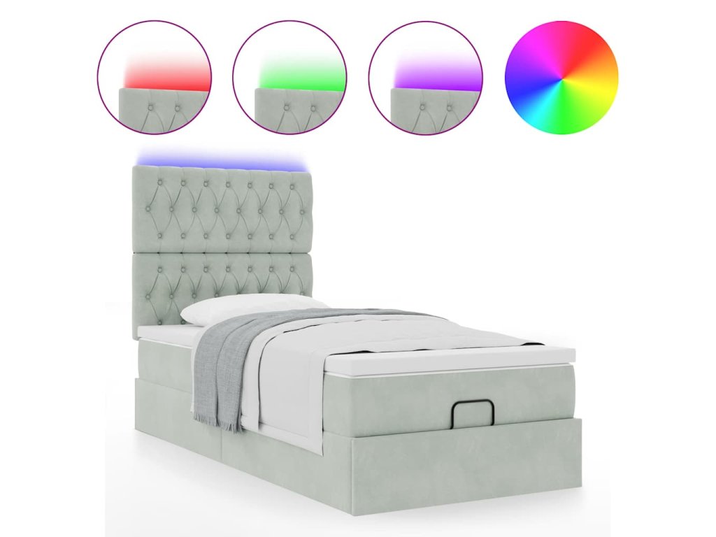 - Světla LED pro příjemnou atmosféru: Tato postel je vybavena LED osvětlením, které lze snadno nastavit a vytvořit tak individuální světelnou atmosféru. Umožňuje přizpůsobit režimy, barvy a jas, abyste si vytvořili příjemnou atmosféru svého interiéru.