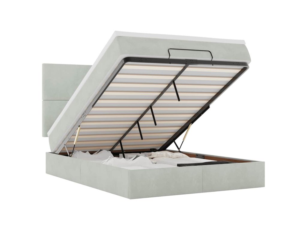 - Dostatek úložného prostoru pod postelí: Díky hydraulickému zvedacímu mechanismu nabízí rám postele dostatek úložného prostoru pod postelí, čímž maximalizuje prostor, aniž by zabíral další podlahovou plochu. Jednoduchým zatažením za rukojeť se roštová základna hladce zvedne a umožní vám rychle a bez námahy vyndat vaše věci.
