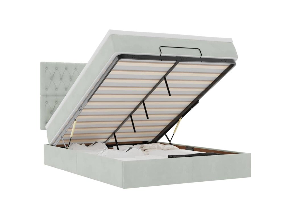 - Dostatek úložného prostoru pod postelí: Díky hydraulickému zvedacímu mechanismu nabízí rám postele dostatek úložného prostoru pod postelí, čímž maximalizuje prostor, aniž by zabíral další podlahovou plochu. Jednoduchým zatažením za rukojeť se roštová základna hladce zvedne a umožní vám rychle a bez námahy vyndat vaše věci.
