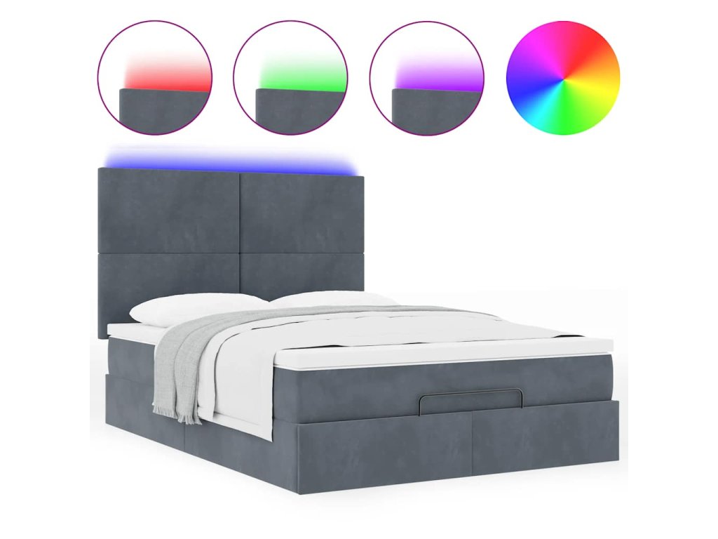 - Světla LED pro příjemnou atmosféru: Tato postel je vybavena LED osvětlením, které lze snadno nastavit a vytvořit tak individuální světelnou atmosféru. Umožňuje přizpůsobit režimy, barvy a jas, abyste si vytvořili příjemnou atmosféru svého interiéru.