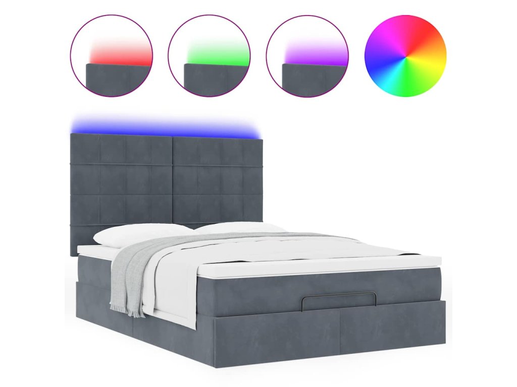 - Světla LED pro příjemnou atmosféru: Tato postel je vybavena LED osvětlením, které lze snadno nastavit a vytvořit tak individuální světelnou atmosféru. Umožňuje přizpůsobit režimy, barvy a jas, abyste si vytvořili příjemnou atmosféru svého interiéru.