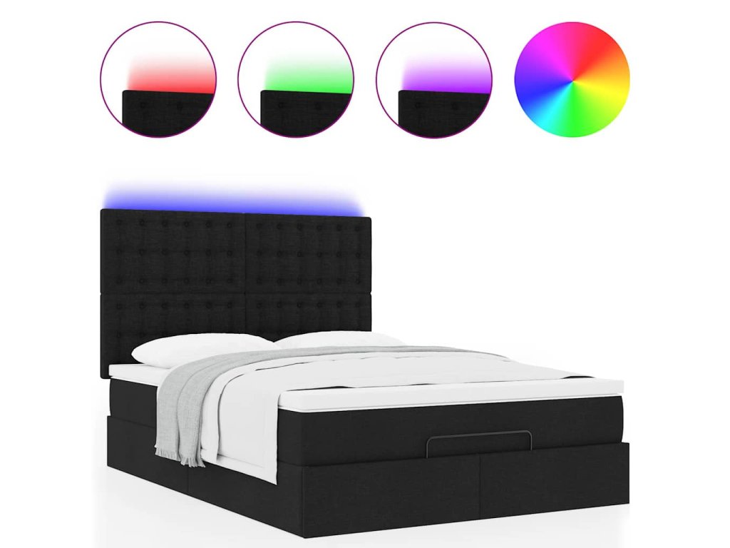 - Světla LED pro příjemnou atmosféru: Tato postel je vybavena LED osvětlením, které lze snadno nastavit a vytvořit tak individuální světelnou atmosféru. Umožňuje přizpůsobit režimy, barvy a jas, abyste si vytvořili příjemnou atmosféru svého interiéru.