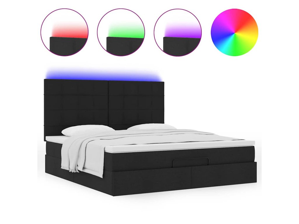 - Světla LED pro příjemnou atmosféru: Tato postel je vybavena LED osvětlením, které lze snadno nastavit a vytvořit tak individuální světelnou atmosféru. Umožňuje přizpůsobit režimy, barvy a jas, abyste si vytvořili příjemnou atmosféru svého interiéru.